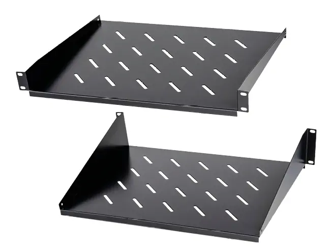 La bandeja colgante de Kommdata está fabricada en chapa de acero laminada en frío, es de fácil instalación y ajustable a los perfiles delanteros y traseros.