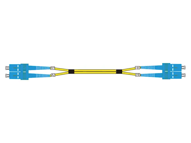 Latiguillos de parcheo monomodo de 2 m. Cable tipo Zipcord de 2 mm. Marcadores de cable en cada extremo para una mejor identificación. Dos piezas termoretráctiles protegen la apertura del cable dúplex.