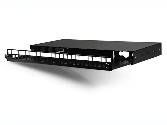 Panel repartidor de fibra óptica para instalar en un rack normalizado de 19” ocupando 1U de altura. Permite la instalación de hasta 24 adaptadores SC simples o dúplex según modelo. Estructura de 1,2mm, al no disponer de guías telescópicas, permite inclinar la bandeja a 45º para un mejor acceso a su interior. Permite retirar e instalar la bandeja con el panel en el rack. Función abierta para instalar los preconectorizados. Orejas de montaje de estilo sencillo.