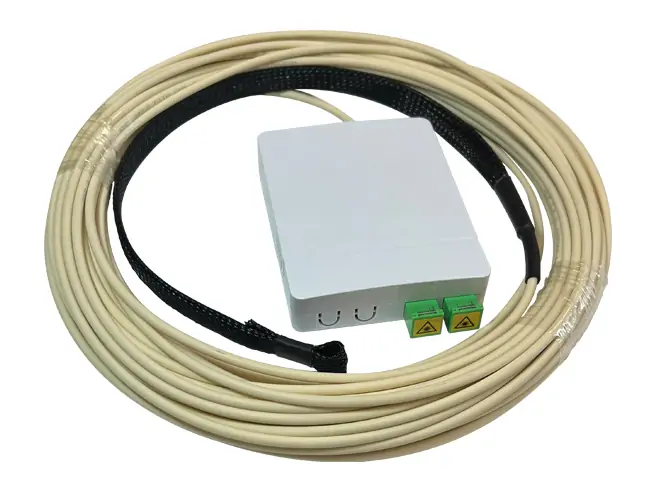 Caja para la terminación PAU conectorizado con cable 2FO rojo-verde G657A2 de color marfil y CPR DCA.